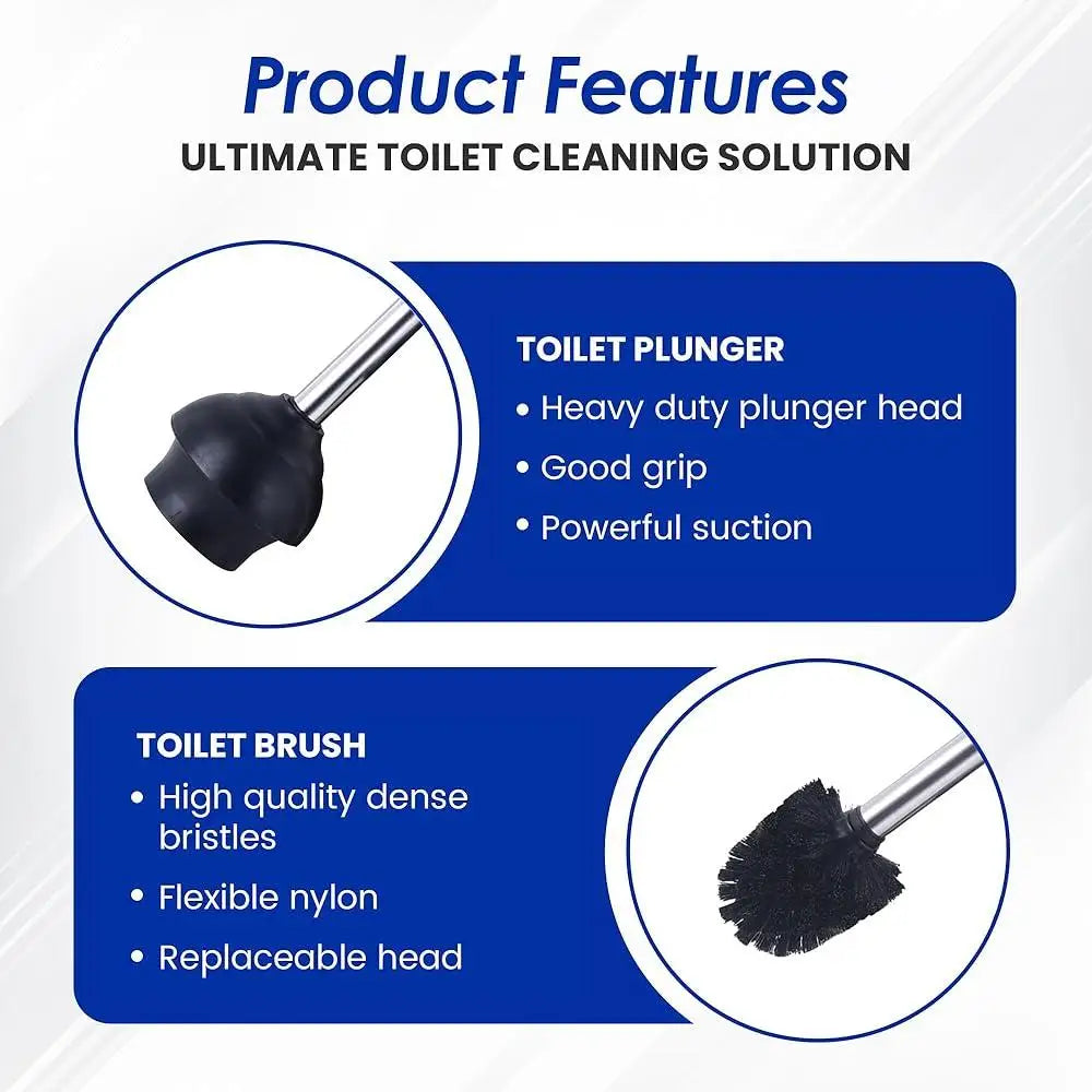 Stainless Steel Toilet Brush Plunger Set - United States