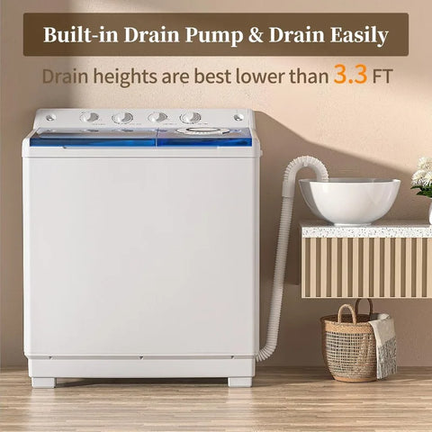 【Twin Tub Design】Wash capacity: 24 lbs, Spin capacity: 16 lbs. This washer is perfect for washing big loads such as shirts, jackets and sheets.