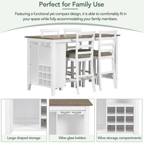 Space-Saving Design: The 5-piece set includes a dining table and 4 chairs that can be fully tucked under the table to save space, making it ideal for smaller living areas without compromising on comfort.