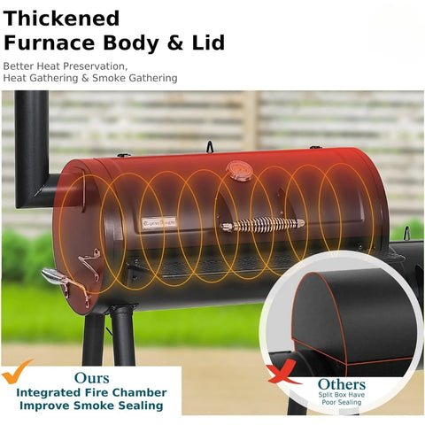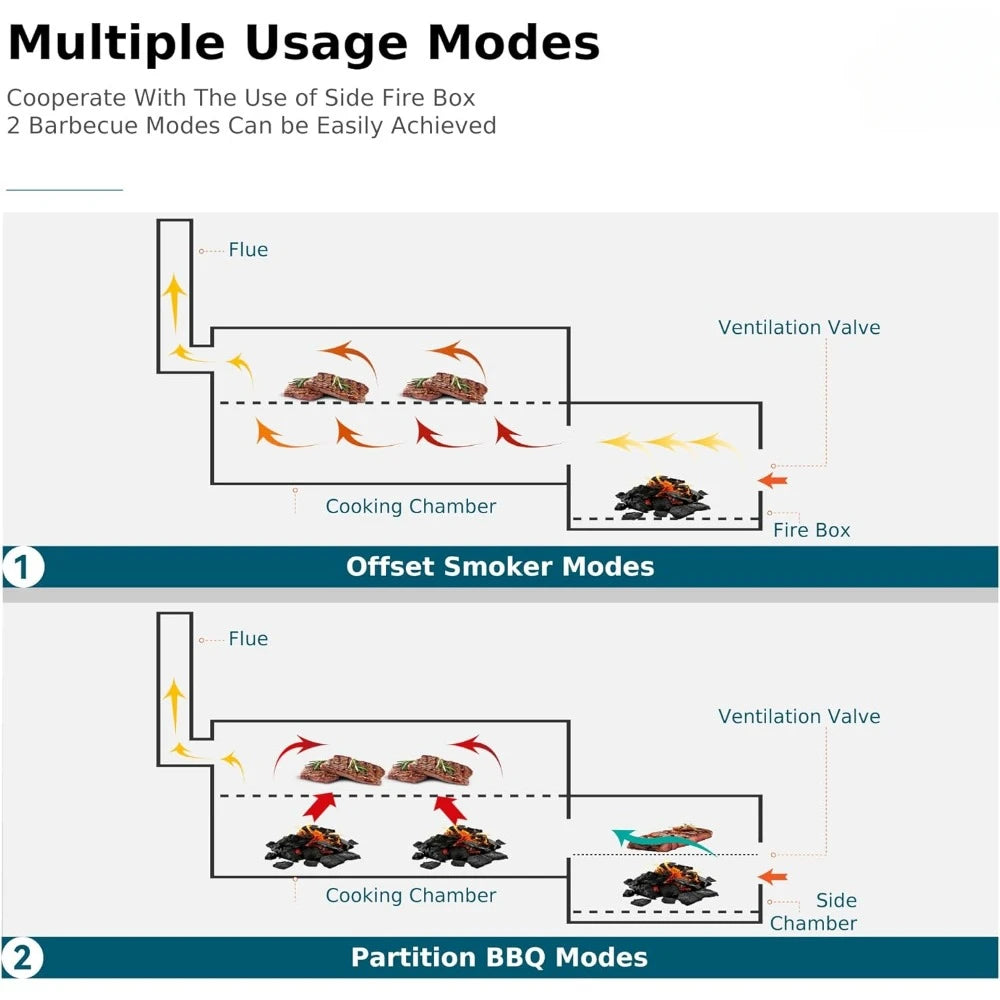Large Smoker Grill: Boasting a generous 512 sq. in. cooking area, this offset charcoal smoker grill accommodates plenty of food, making it easy to feed your family and friends during any occasion