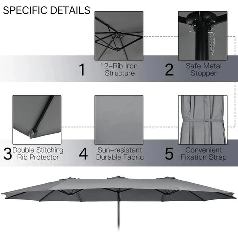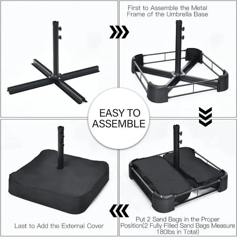 Ultimate Shade Solution: The generously sized double-sided umbrella creates a vast canopy of shade, keeping your dining area cool during hot summer days. And the umbrella stand with 2 weighted sandbags (sand not included) can weigh 180 lbs when fully filled, preventing the umbrella from tipping over.