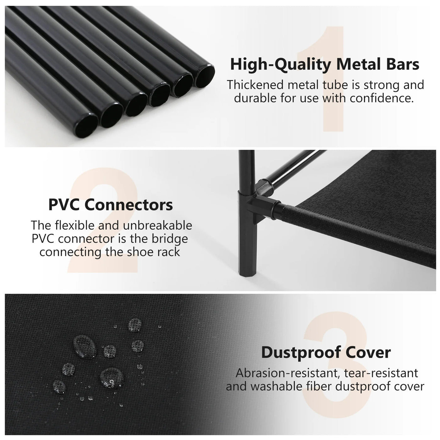 Wide Use-No matter where you place this shoe shelves with Dustproof Cover, entrance, cloakroom, hallway, or garage, it will turn a cluttered scene into a neat look.